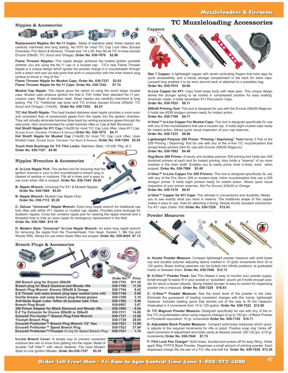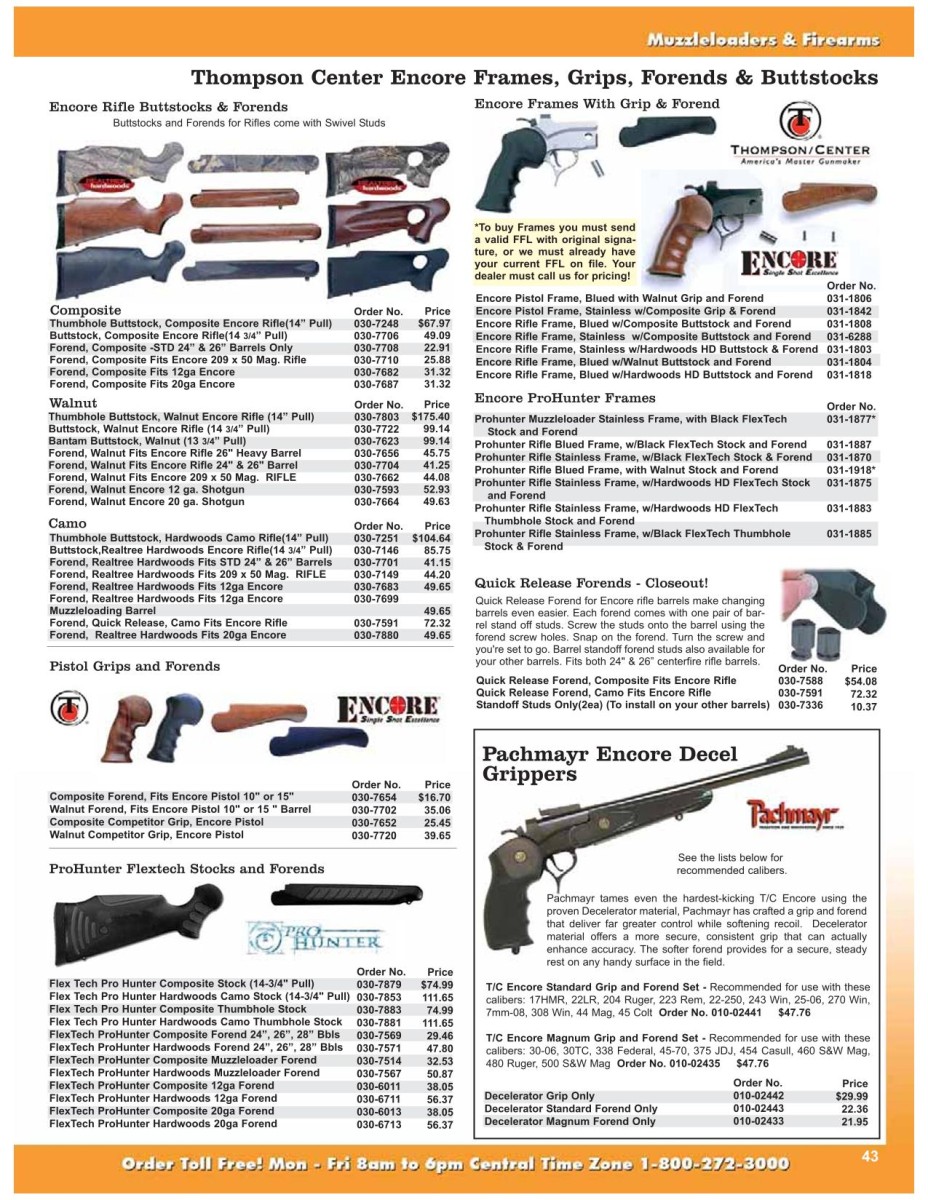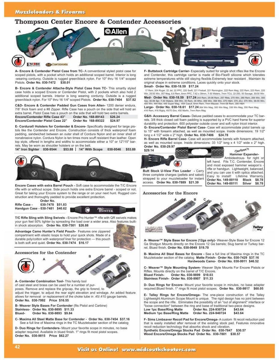 Sistemi di mira: È possibile montare una base per cannocchiale con morsetti da 1″ (25,4 mm) di diametro al posto della tacca di mira. È disponibile anche un’altra base per la guida del cannocchiale e una nuova base con morsetto per cannocchiale a sgancio rapido. T/C offre anche una gamma di cannocchiali per pistole e armi lunghe.