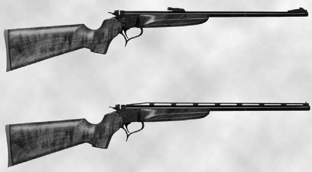 Sotto, fucile T/C Contender con canna 410 ad anima liscia.