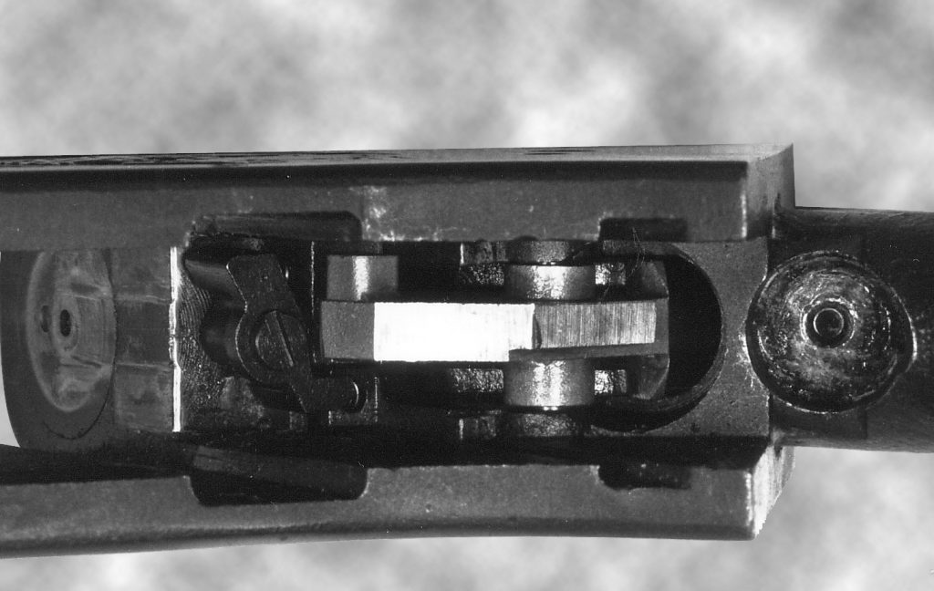 Riprenderemo in dettaglio questa parte dove trattiamo la regolazione del grilletto. La foto 1 mostra l’interno dell’arma in questa fase dello smontaggio.